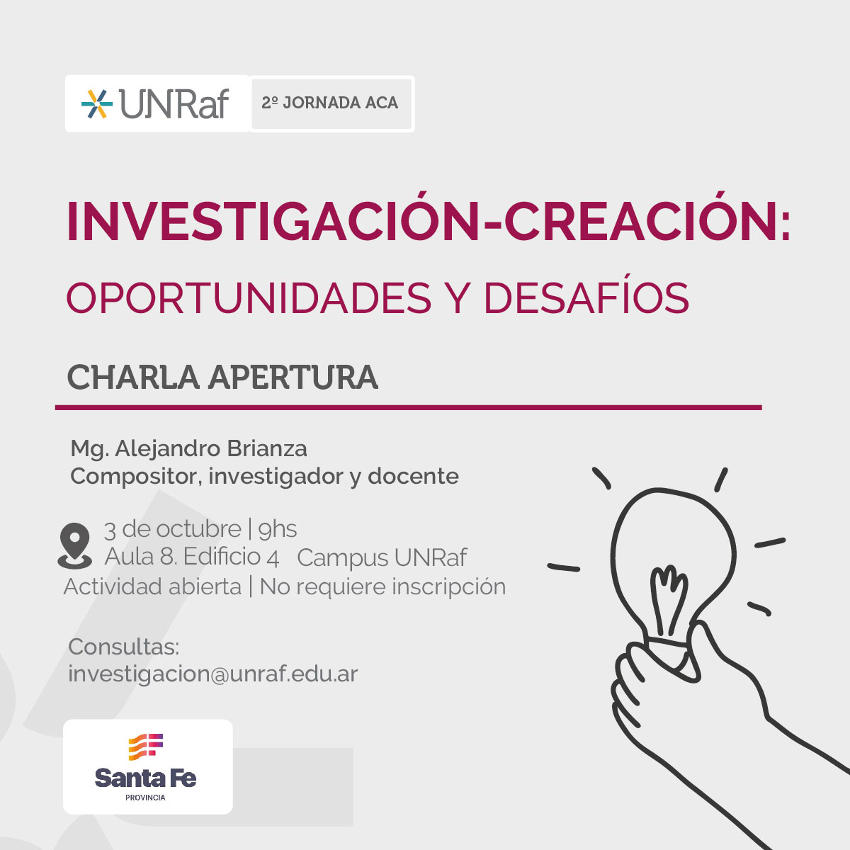 En este marco, voy a estar tomando la posta en la charla inaugural: La investigación-creación. Experiencias y desafíos, relativa a este enfoque particular sobre la investigación en artes en el que vengo trabajando, para elaborar sobre sus alcances, problemáticas y posibles soluciones en el contexto académico y universitario en general, con una mirada transdisciplinar.